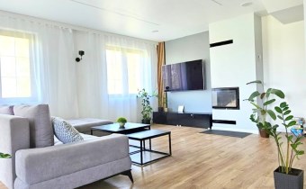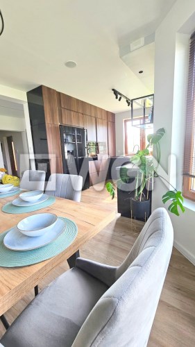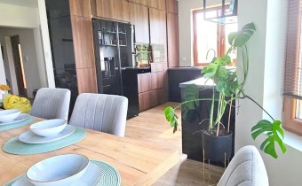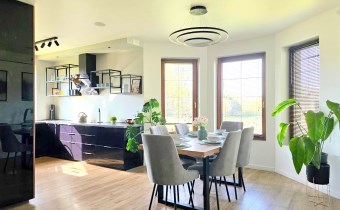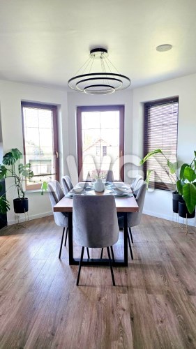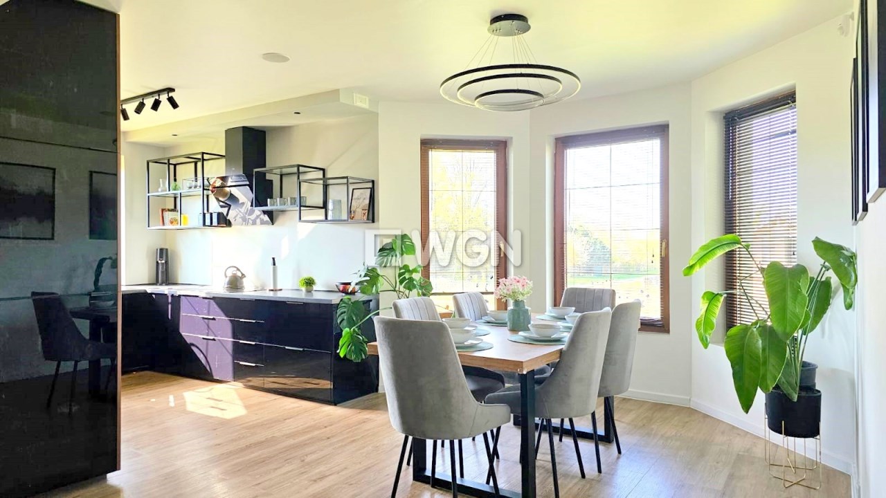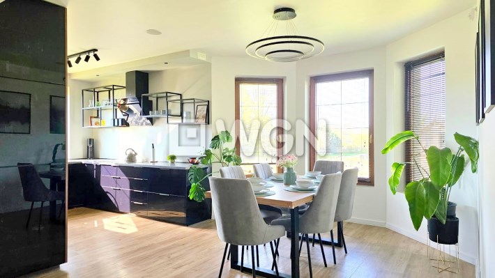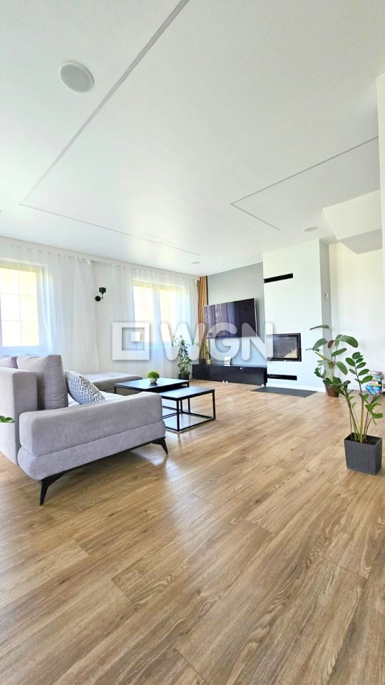 Dom posadowiony jest na dużej działce o powierzchni 1800 m². Budynek robi doskonałe wrażenie zarówno z zewnątrz, jak i wewnątrz – urządzony z dbałością o każdy detal.