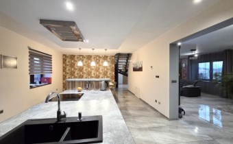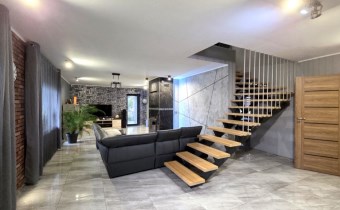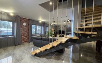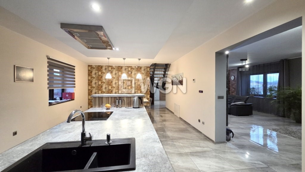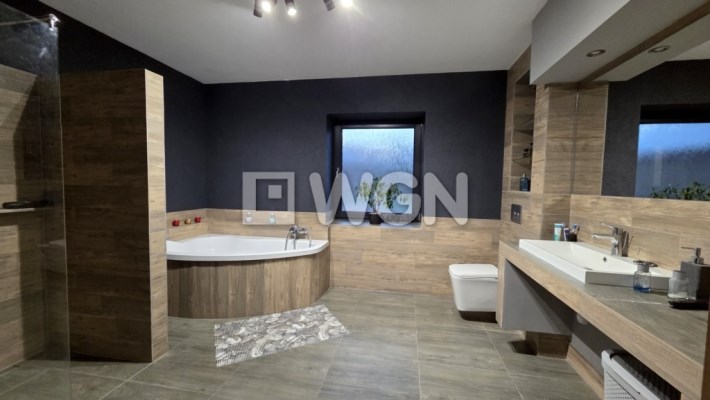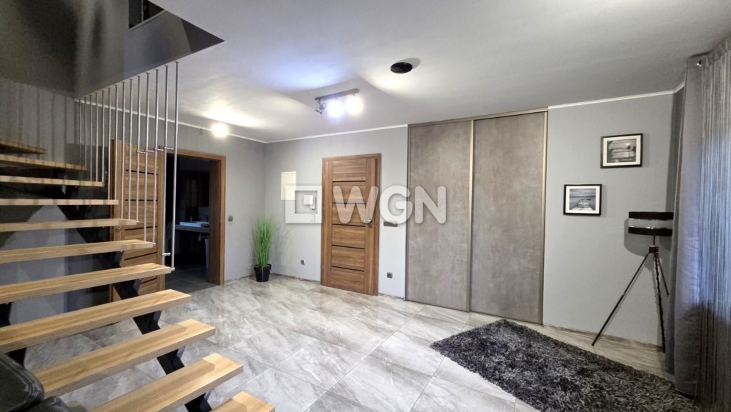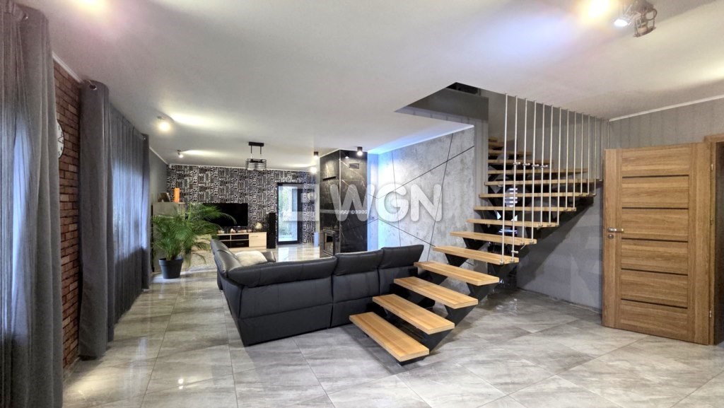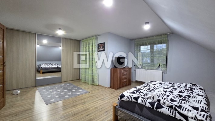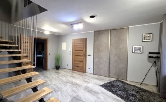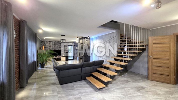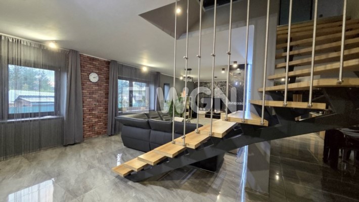 Dom został wybudowany w 2014 roku i utrzymany jest w bardzo dobrym stanie technicznym. Funkcjonalny układ dwóch poziomów w naturalny sposób dzieli przestrzeń na strefę dzienną i prywatną.
