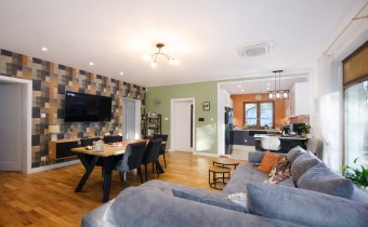 przestronny salon z częścią kuchenną