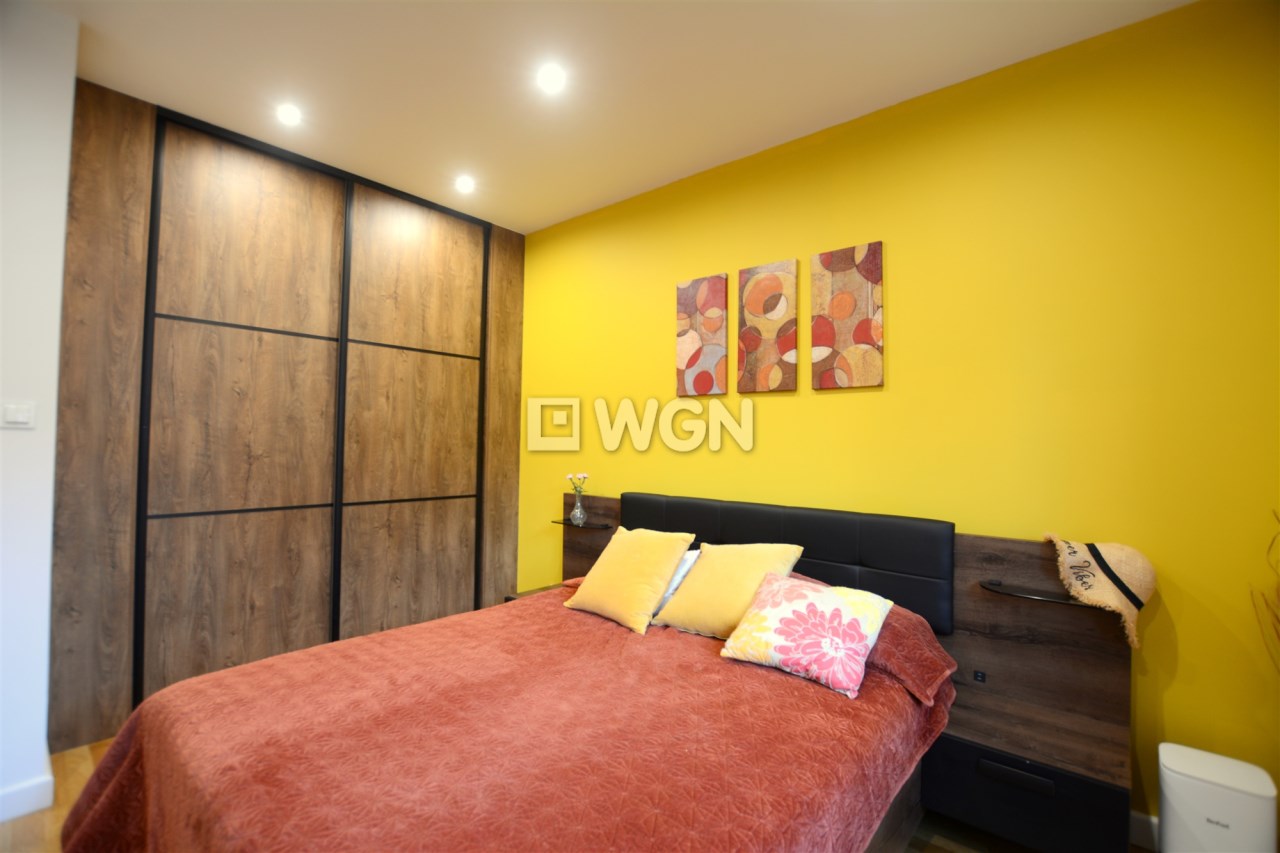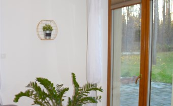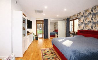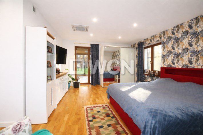 Z głównej sypialni prowadzi bezpośrednie wyjście do ogrodu z pięknym widokiem na zieleń.