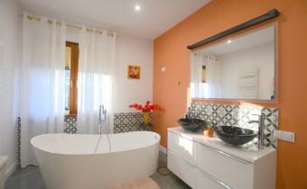 jedna z prywatną łazienką z dużą, klimatyczną wanną oraz wyjściem na ogród