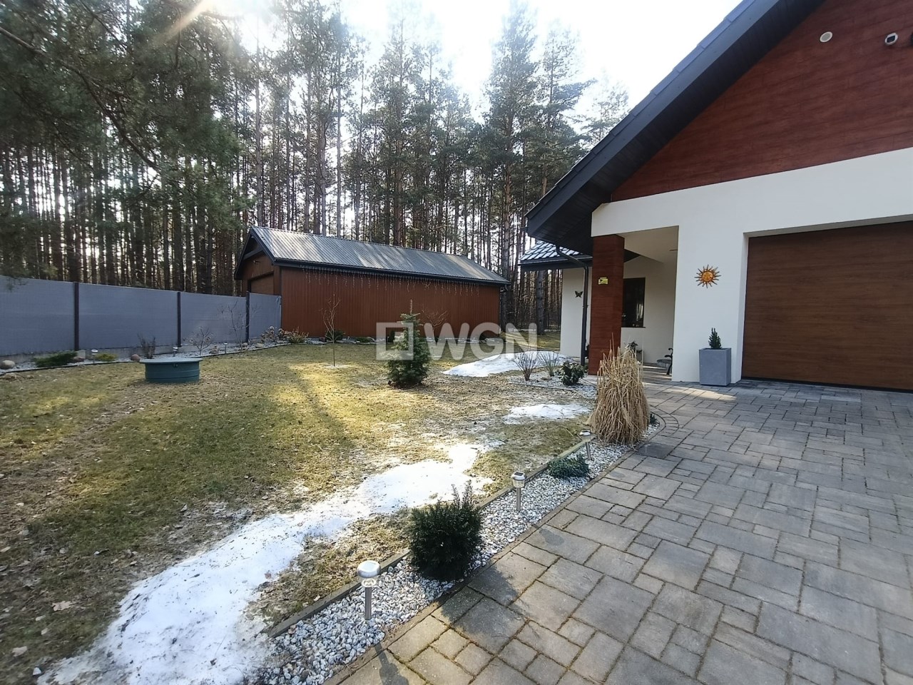 Na terenie posesji znajduje się również drugi budynek gospodarczo-garażowy, idealny do przechowywania sprzętu ogrodowego, rowerów czy narzędzi.