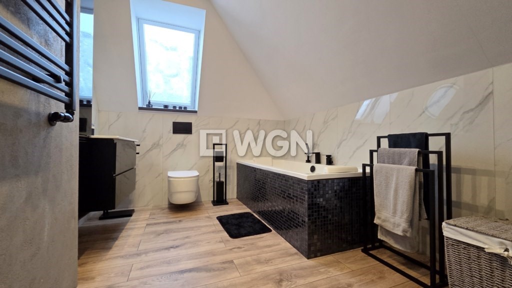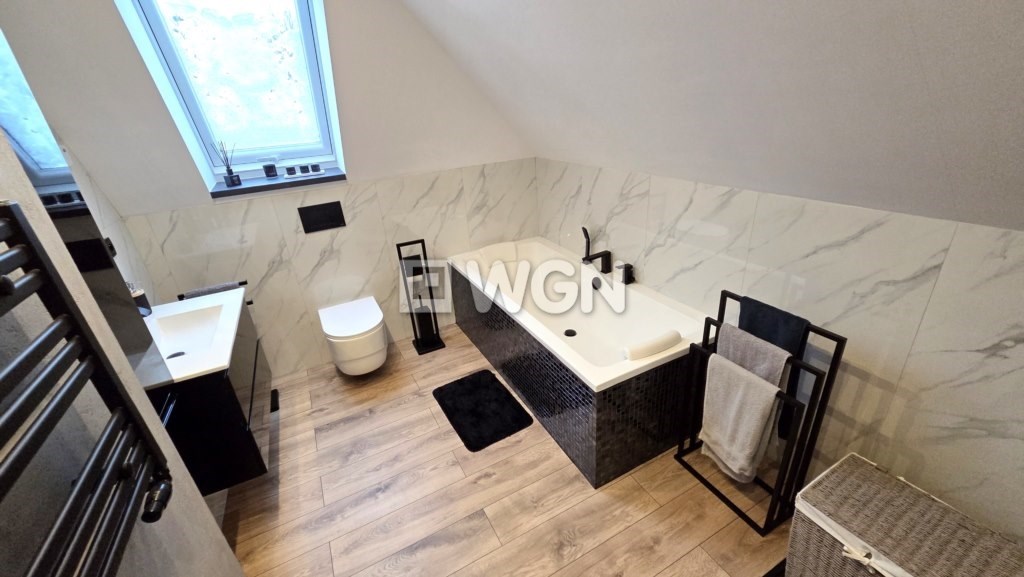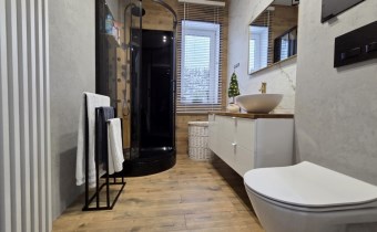 duża łazienka z oknem (prysznic, WC, umywalka)