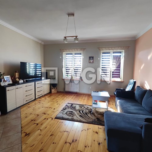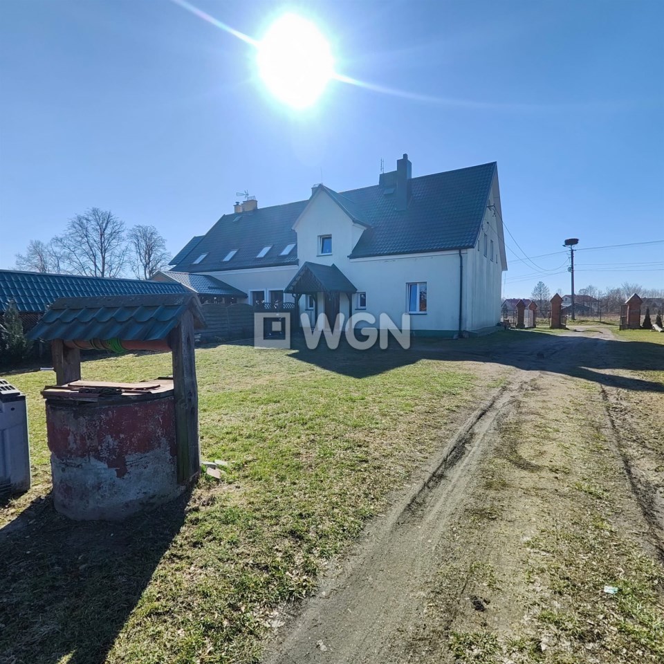 Budynek jest podpiwniczony – w piwnicy znajduje się piec na węgiel i drewno. Nieruchomość jest podłączona do wodociągu i kanalizacji z sieci gminnej, a dojazd zapewnia droga gminna.