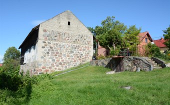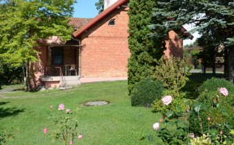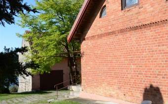 Główny budynek mieszkalny z czerwonej cegły – solidny, w bardzo dobrym stanie technicznym, w pełni podpiwniczony.