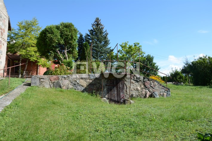 Kamienna piwniczka na działce – niezwykle klimatyczny element, podkreślający mazurski charakter posiadłości.