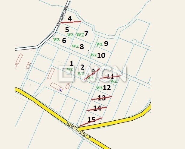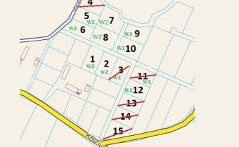 Nieruchomość położona jest w kompleksie parceli działek o powierzchni od 1275 m2 do 1887 m2, w miejscu z którego roztacza się widok na okoliczne łąki. Działki płaskie, w kształcie prostokąta, kilka z nich graniczą z rowem melioracyjnym. Do większości działek dojazd drogą wewnętrzną, w której sprzedawany jest udział wliczony w cenę. W pobliżu znajduje się prąd oraz wodociąg i kanalizacja z sieci gminnej. W chwili obecnej na na działkach trwają prace niwelacyjne, mające na celu wyrównanie terenu oraz wykonanie drogi wewnętrznej. Na część działek wydane zostały warunki zabudowy na budowę budynku mieszkalnego jednorodzinnego.
