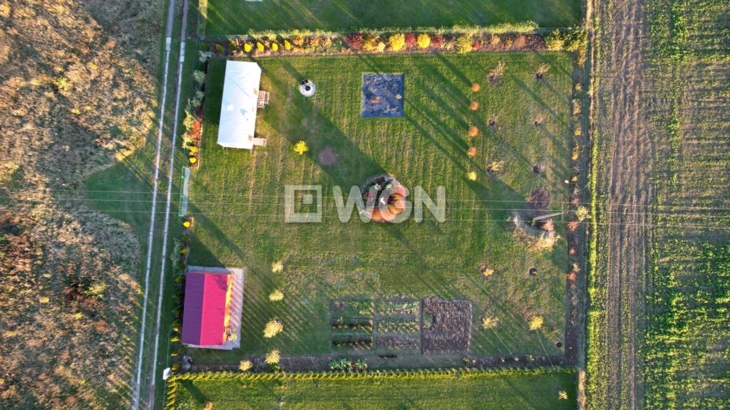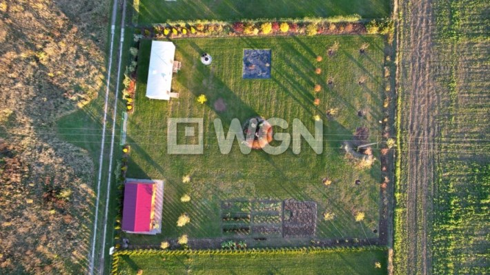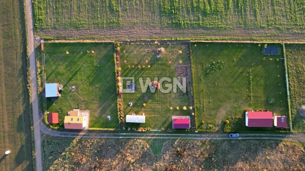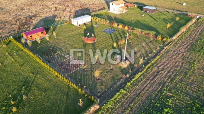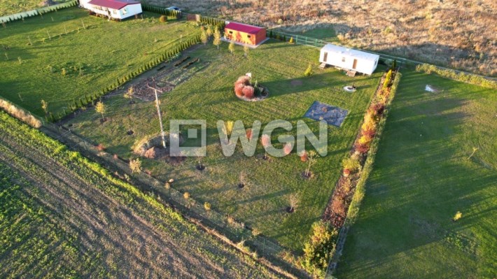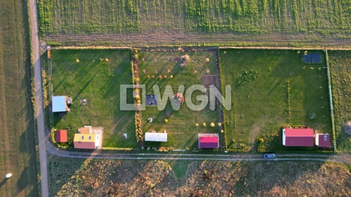 Działka jest ogrodzona, płaska i ma regularny kształt prostokąta, co zapewnia łatwość dalszego zagospodarowania.