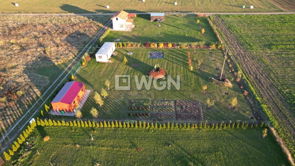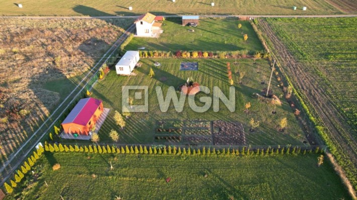 - dojazd gminną drogą gruntową w bardzo dobrym stanie, a następnie ok. 40 m drogą prywatną