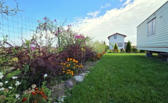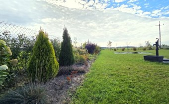 Teren jest pięknie urządzony i zadbany – liczne drzewa ozdobne i owocowe, kwitnące rabaty oraz wydzielone miejsce na warzywniak tworzą wyjątkowy klimat.