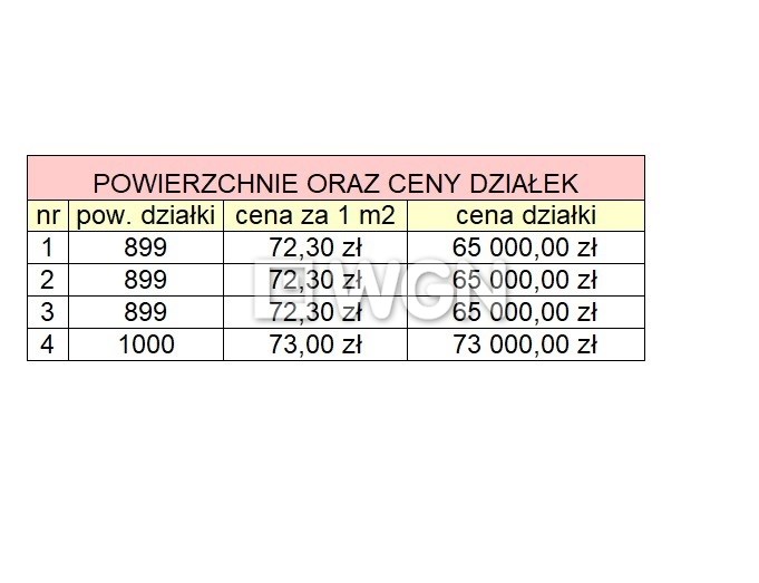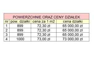 Szczegółowa tabela cen i powierzchni oraz plan podziału dostępne są w załączonych materiałach graficznych.