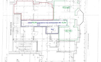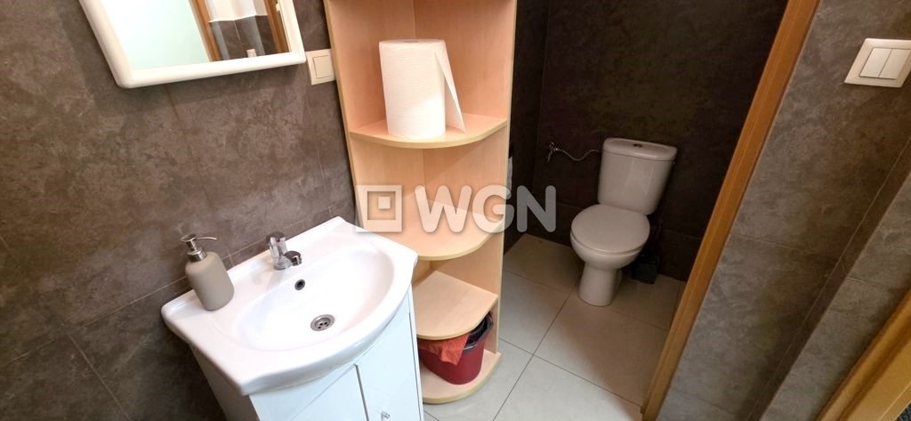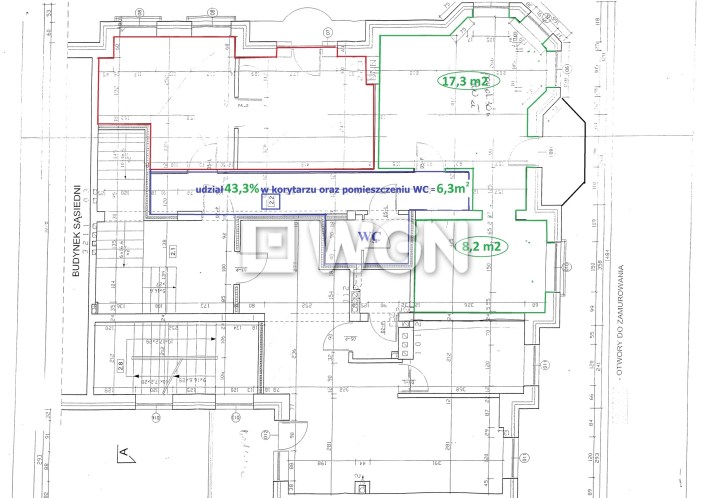 Wejście do budynku od strony ulicy, a następnie przez zadbaną klatkę schodową wchodzimy na pierwsze piętro. Lokal składa się z dwóch pomieszczeń, jedno o powierzchni 8,20 m² i drugie o powierzchni 17,30 m² z balkonem, z którego roztacza się widok na ulicę Wojska Polskiego. Do lokalu przynależy udział w korytarzu oraz pomieszczeniu WC z umywalką i toaletą.