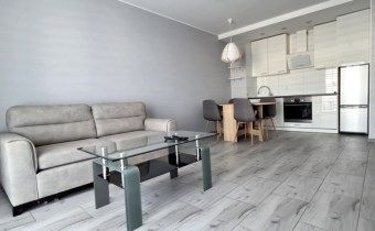 salon z aneksem kuchennym i wyjściem na duży balkon - doskonały na poranną kawę lub chwilę relaksu,