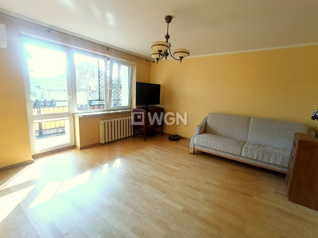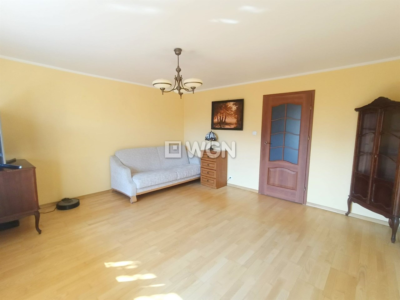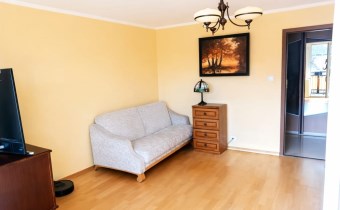 Na podłogach położony jest zadbany parkiet. Do mieszkania przynależy także duża piwnica, zapewniająca dodatkową przestrzeń do przechowywania.