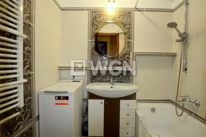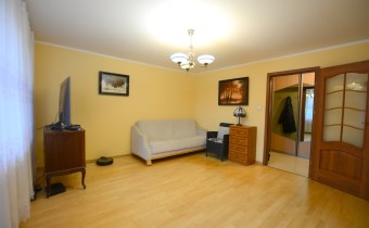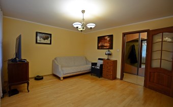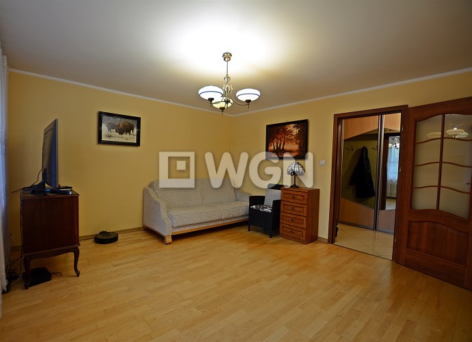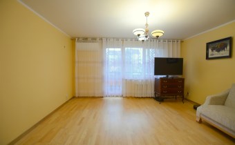 Na podłogach położony jest zadbany parkiet. Do mieszkania przynależy także duża piwnica, zapewniająca dodatkową przestrzeń do przechowywania.